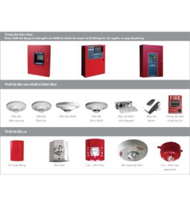 Phụ kiện: Đầu báo khói, nhiệt, lửa, mạch cách ly, module mở rộng, còi, đèn báo, loa phát thanh,…